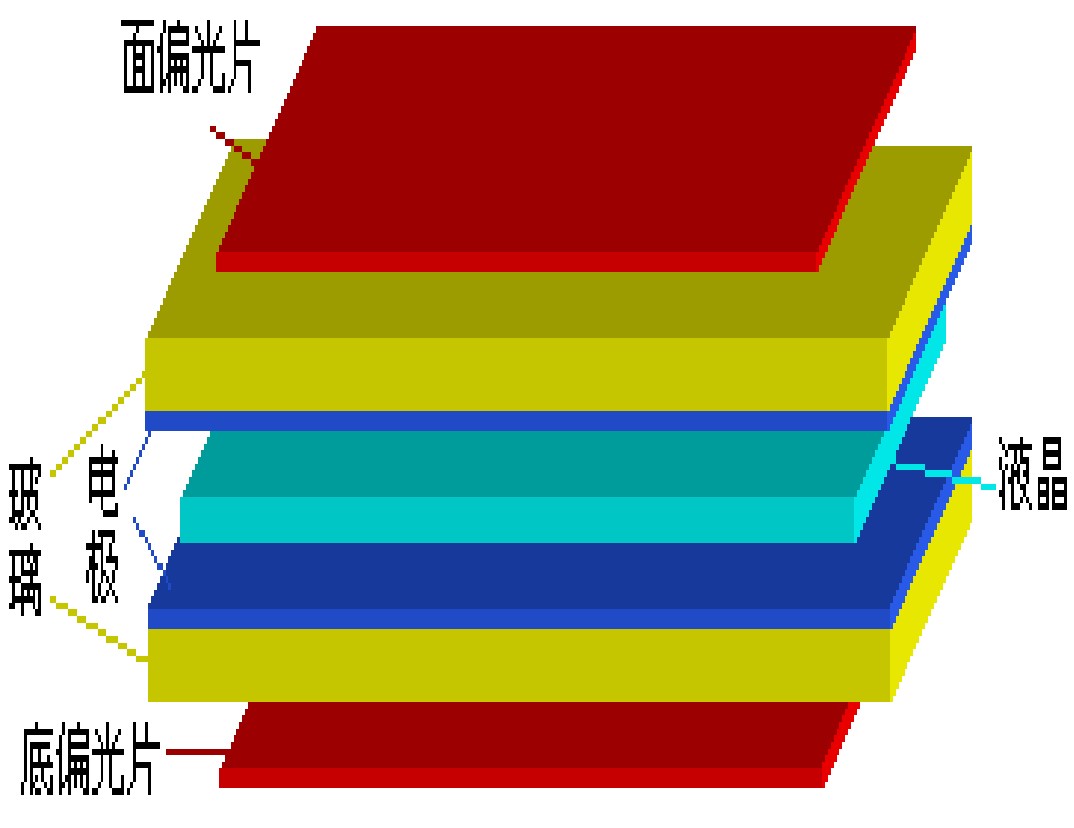 எல்சிடிகளின் மையக் கட்டமைப்பு பல துல்லியமாக லேமினேட் செய்யப்பட்ட பொருட்களைக் கொண்டுள்ளது, இதில் போலரைசர்கள், மின்முனைகள், கடத்தும் பேஸ்ட், திரவ படிகங்கள், சீரமைப்பு படங்கள், கண்ணாடி அடி மூலக்கூறுகள், சுற்றளவு முத்திரைகள் மற்றும் பிரதிபலிப்பான்கள் ஆகியவை அடங்கும். ஒவ்வொரு பொருள் அடுக்கும் தனிப்பட்ட செயல்பாடுகளைச் செய்கிறது: