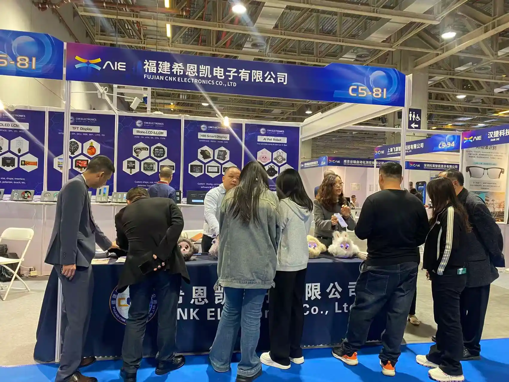 ஹால் C க்குள் நுழையும் போது, CNK எலக்ட்ரானிக்ஸ் சாவடி C5-81 முன் ஒரு நீண்ட வரிசை ஏற்கனவே உருவாக்கப்பட்டது. "Kbao" என்ற எட்டு AI ரோபோக்கள் வெவ்வேறு வடிவங்களில் ஒரே நேரத்தில் பல காட்சிகளை நிகழ்த்தி, ஐரோப்பா, தென்கிழக்கு ஆசியா மற்றும் கிரேட்டர் பே ஏரியாவில் இருந்து தொழில்முறை பார்வையாளர்களை நிறுத்தி விசாரித்து வந்தன.