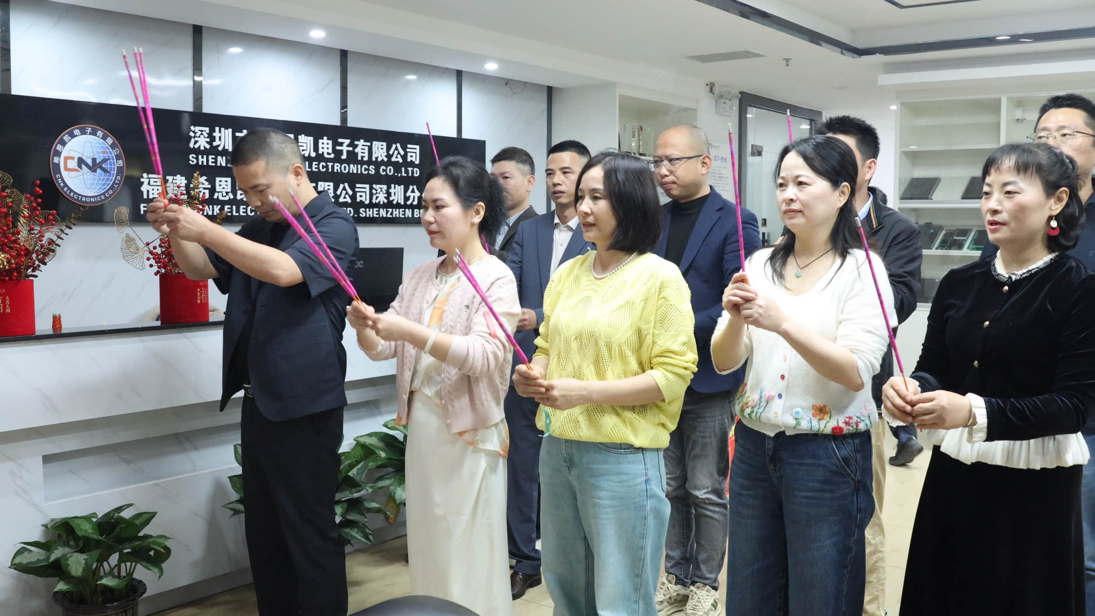 விடியற்காலையில், நிறுவனத்தின் உயர் நிர்வாகம் ஒன்று கூடி, அனைத்து ஊழியர்களையும் ஒரு பெரிய திறப்பு விழாவை நடத்த வழிவகுத்தது. மேசைகளில் இருந்து தூப புகை எழுந்தது, காணிக்கைகள் ஏராளமாக இருந்தன. இது வானத்திற்கும் பூமிக்கும் எங்களின் மரியாதையை வெளிப்படுத்தியது மட்டுமல்லாமல், சாதகமான வானிலை மற்றும் சுமூகமான வணிகத்துடன் வளமான ஆண்டாக அனைத்து ஊழியர்களின் இதயப்பூர்வமான வாழ்த்துக்களையும் தெரிவித்தது. தூபத்தின் மத்தியில், தலைவர்கள் மிகுந்த பக்தியுடன் தூபத்தை செலுத்தினர், புதிய ஆண்டில் நிறுவனத்தின் மகத்தான திட்டங்களுக்கு ஆசீர்வாதங்களையும் நல்ல அதிர்ஷ்டத்தையும் வேண்டினர்.