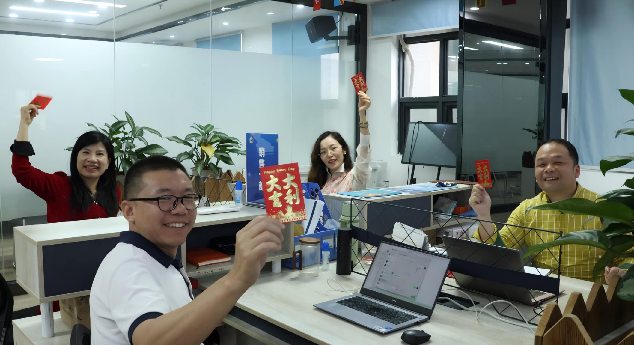 கலகலப்பான விழாவுக்குப் பிறகு, ஊழியர்களுக்கு மகிழ்ச்சியான தருணம் வந்தது - புத்தாண்டு தொடக்க சிவப்பு உறைகள் விநியோகம்! தலைவர்கள் ஆசீர்வாதங்கள் மற்றும் நல்ல அதிர்ஷ்டம் நிரப்பப்பட்ட சிவப்பு உறைகளை ஒவ்வொன்றாக வழங்கினர், திரும்பி வரும் ஒவ்வொரு பணியாளருக்கும் தனிப்பட்ட முறையில் வழங்கப்பட்டது. இது அனைவருக்கும் நிறுவனத்தின் புத்தாண்டு வாழ்த்து, மேலும் பணிக்குத் திரும்பவும், புதிய போரில் ஈடுபடவும் அனைவரையும் ஊக்குவிப்பதற்காகவும் இது அமைந்தது! சிவப்பு உறைகளைப் பெற்ற பிறகு, அனைவரின் முகங்களும் பிரகாசமான புன்னகையால் நிரம்பியிருந்தன, மேலும் காட்சியின் சூழ்நிலை சூடாகவும் வசதியாகவும் இருந்தது.